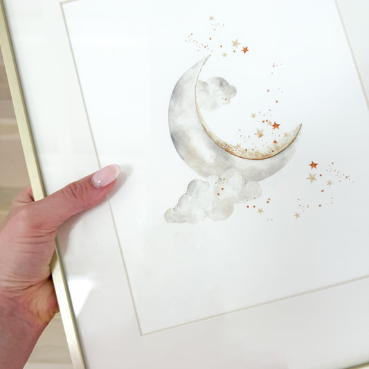 Celestial Nursery Wall Art Prints (Set of 3) | Moon, Stars & Clouds Watercolors