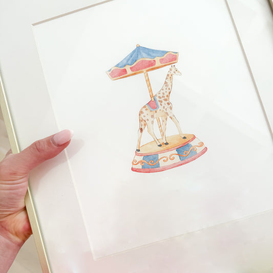 Carousel Animals Watercolor Nursery Wall Art Print Set - 3 Unframed 8x10