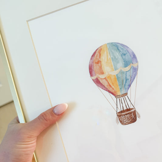 Rainbow Hot Air Balloon Nursery Watercolor Wall Art Print Set - 3 Unframed 8x10