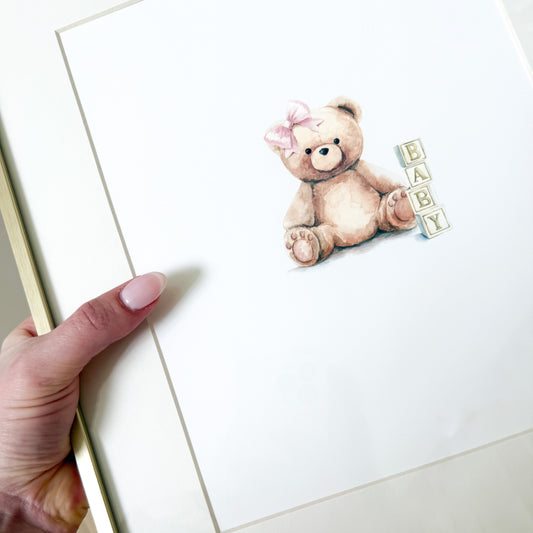 Teddy Bear Blush Watercolor Nursery Wall Art Print Set - 3 Unframed 8x10 Watercolor
