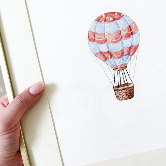 Red & Blue Hot Air Balloon Nursery Wall Art Watercolor Print Set - 3 Unframed 8x10